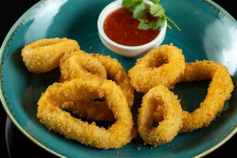 Кольца кальмаров в панировке с кисло-сладким соусом