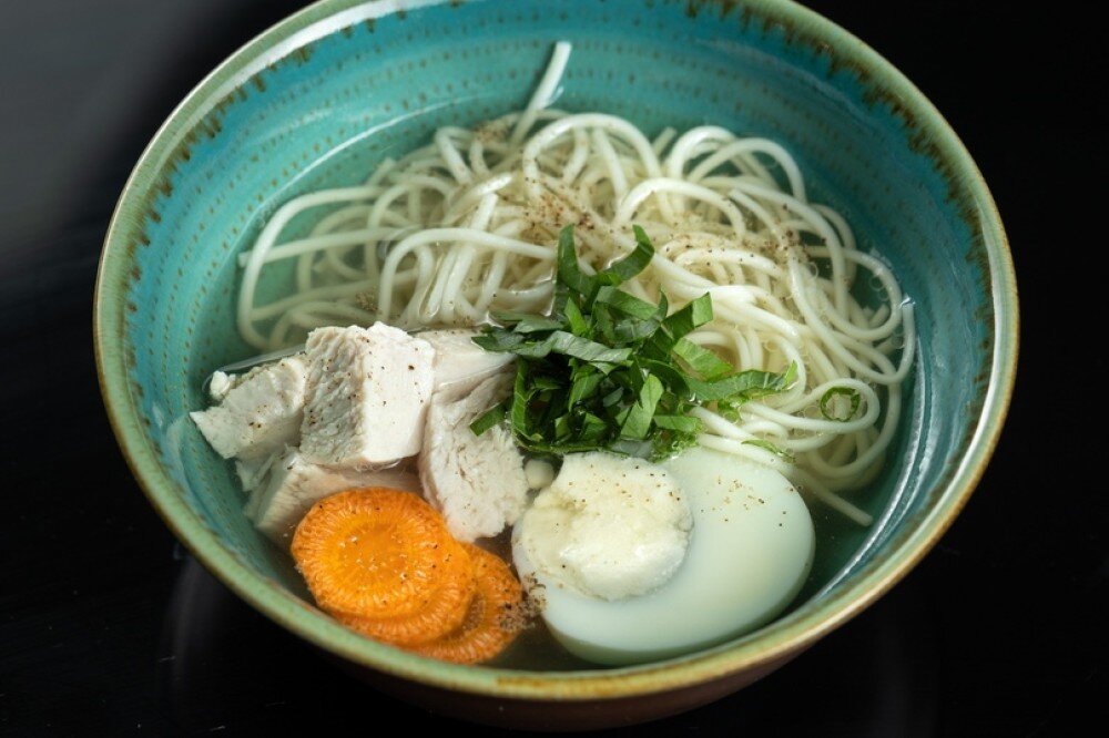 Классический бульон из курицы, яйца и вермишели