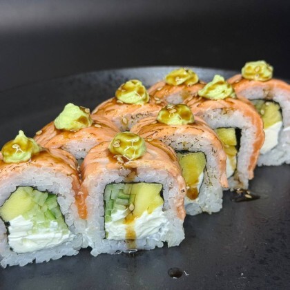 Ролл с угрем и сырным соусом