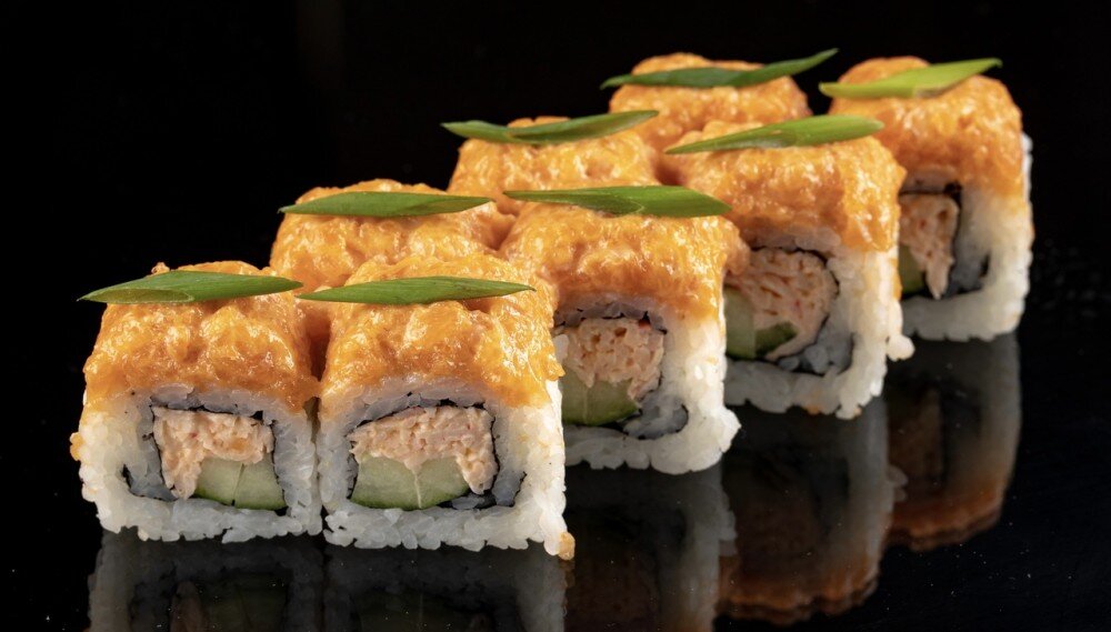 рис,нори,лосось,спайси соус, ркб-крем,лук зеленый