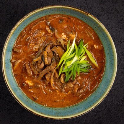 По вкусу этот низкокалорийный деликатес напоминает грибы, по внешнему виду- баклажаны, а по питательной ценности абсолютно уникален. В нём много белка, есть йод и даже вещества, выводящие радионуклеиды. Блюдо из побегов папоротника-орляка.